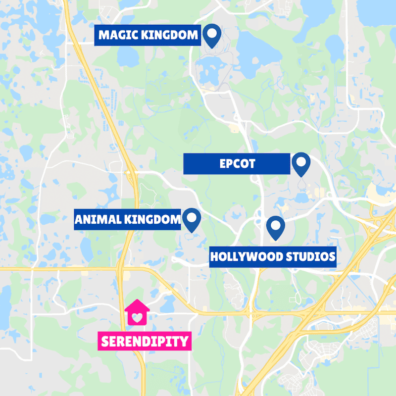 Serendipity at Indian Creek is just over 4 miles from Disney’s Animal Kingdom.